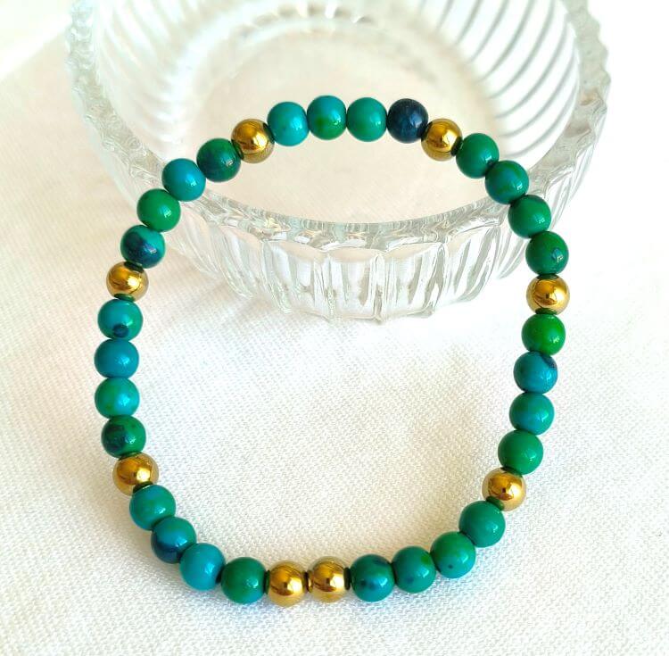 Schreibe die erste Rezension für „Armband Malachit und goldfarbener Hematin – unisex“