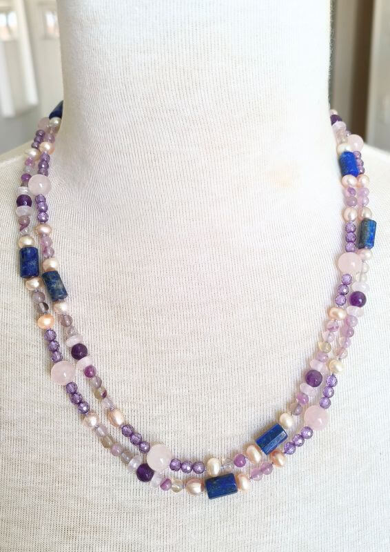 Steinmix aus Amethyst, Rosenquarz, Lapislazuli und Perlen
